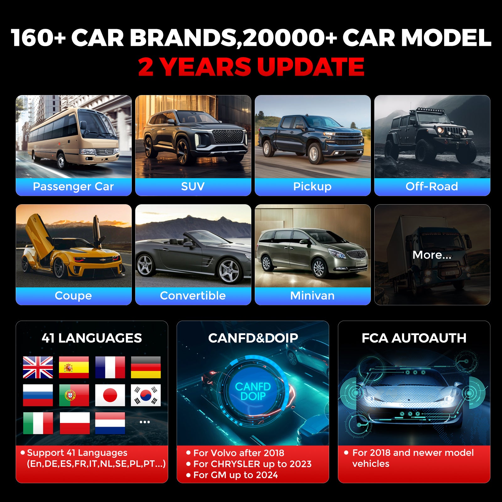 - CAN-FD/DOIP Support: Faster data transfer for precise diagnostics on modern vehicles.