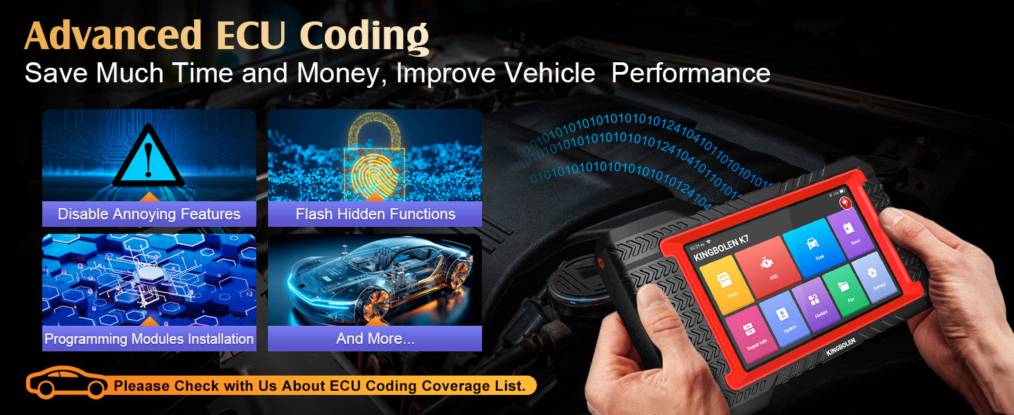 The KINGBOLEN K7 introduces Advanced ECU Coding, a powerful feature designed to unlock your vehicle’s full potential while saving you time and money. With its cutting-edge technology, this tool allows you to customize and optimize your vehicle’s electronic control unit (ECU) for improved performance and convenience.