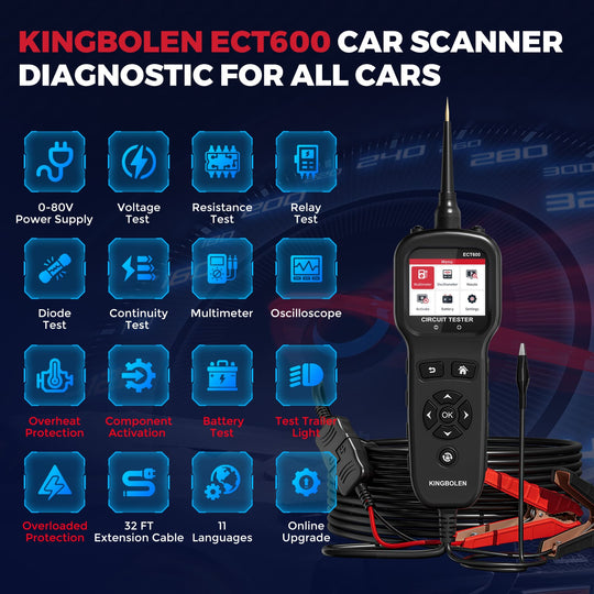 KINGBOLEN ECT600 12/24V Car Battery Tester Multi-function Battery Analyzer 0-80V DC With 10m Extension Cord